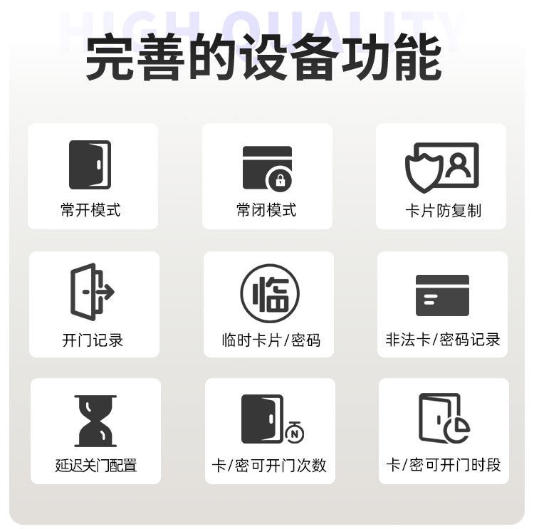 重庆这款智能门锁提供室内门锁和防盗门锁两种选择,其中室内门锁尺寸为 2806521mm,适配 5050 锁体;防盗门锁尺寸为 3657021mm,适配 6068 锁体,可满足不同场景的安装需求。它采用铝合金一体成型搭配钢化玻璃面板打造,兼具坚固耐用的品质与简洁美观的视觉效果。门锁支持蓝牙无线通讯,解锁方式丰富多样,密码、卡片、蓝牙、钥匙四种方式随心选择,满足不同使用习惯与应急需求。其工作温度范围为 - 20~70℃,能适应多数地区的气候条件,采用碱性电池供电,安装更换便捷,是兼具安全性与实用性的门锁选择。
